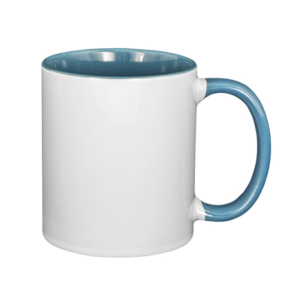Bílý keramický hrnek o objemu 300 ml s barevným vnitřkem a uchem. Lze potisknout levou i pravou stranu, nebo obě strany najednou. Je vhodný jako originální dárek k narozeninám či k Vánocům, pro partnera, rodiče nebo prarodiče, například s fotkou a vzkazem, popř. jako reklamní předmět.